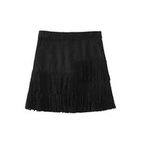 Stylish Suede Tassels Spliced Black Skirt For Women - Black S - BLACK / S