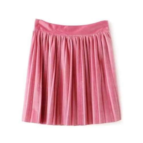 Velour Mini Pleated Skirt - Light Pink L - LIGHT PINK / L