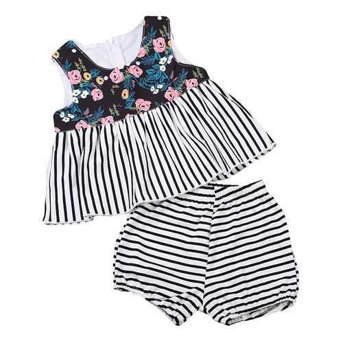 Material: Cotton Pattern Type: Floral,Striped Printed Feature: Cute,Lovely,Sweet Closure Style: Pullover,Elastic Waistband Sleeve Style: Regular Sleeve Length: Sleeveless Pants Length: Short Occasion: Casual,Home,Party,Holiday Gender: Girls Season: Summer